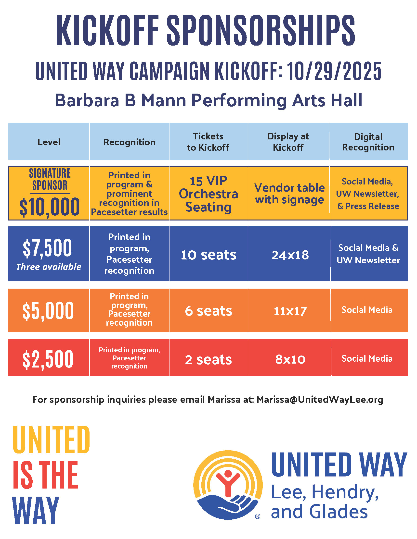 See sponsorships below - Email Marissa@UnitedWayLee.org