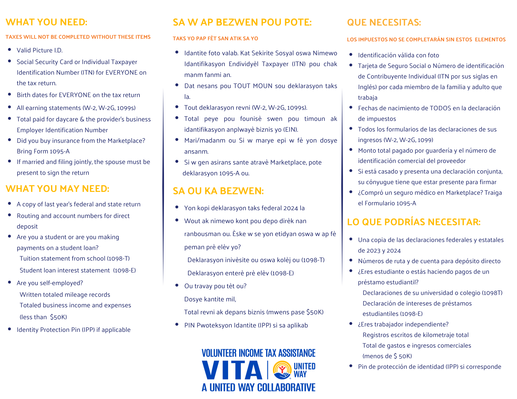 - Upload your Documents to a secure site– with Get Your Refund, complete an online intake form and scan or upload photos of your tax documents into a secure account where our United Way certified VITA Volunteers will complete your tax return remotely. Program begins January 26th. Getyourrefund.org/uwlee