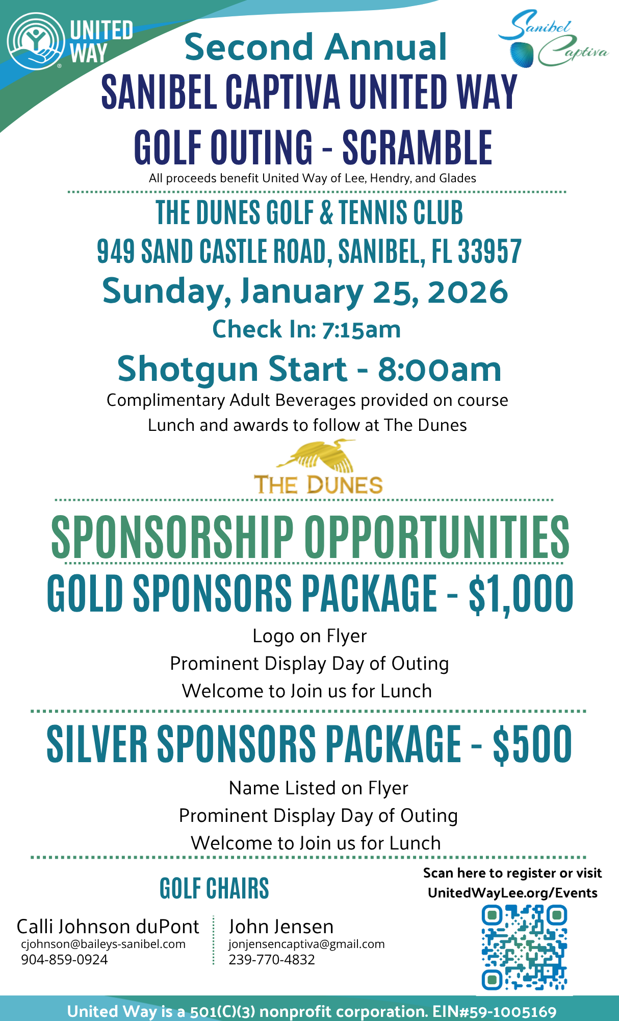 Name First Last Adress Address Address 2 City/Town State/Province - None -AlabamaAlaskaAmerican SamoaArizonaArkansasArmed Forces (Canada, Europe, Africa, or Middle East)Armed Forces AmericasArmed Forces PacificCaliforniaColoradoConnecticutDelawareDistrict of ColumbiaFederated States of MicronesiaFloridaGeorgiaGuamHawaiiIdahoIllinoisIndianaIowaKansasKentuckyLouisianaMaineMarshall IslandsMarylandMassachusettsMichiganMinnesotaMississippiMissouriMontanaNebraskaNevadaNew HampshireNew JerseyNew MexicoNew YorkNorth CarolinaNorth DakotaNorthern Mariana IslandsOhioOklahomaOregonPalauPennsylvaniaPuerto RicoRhode IslandSouth CarolinaSouth DakotaTennesseeTexasUtahVermontVirgin IslandsVirginiaWashingtonWest VirginiaWisconsinWyomingAlbertaBritish ColumbiaManitobaNew BrunswickNewfoundland and LabradorNova ScotiaNorthwest TerritoriesNunavutOntarioPrince Edward IslandQuebecSaskatchewanYukon ZIP/Postal Code Email Phone Company Name if applicable Sponsorship Level $1,000 - Gold Sponsoprship Package Logo on Flyer Prominent Display Day of Outing Welcome to Join us for Lunch $500 - Siklver Sponsorship Package Name Listed on Flyer Prominent Display Day of Outing Welcome to Join us for Lunch Payment Method Check Credit Card Player Information Player One Player Two Player Three Player Four Submit Make checks payable to United Way of Lee County and mail to 7273 Concourse Dr. Ft. Myers, FL 33908 Proceed to Payment